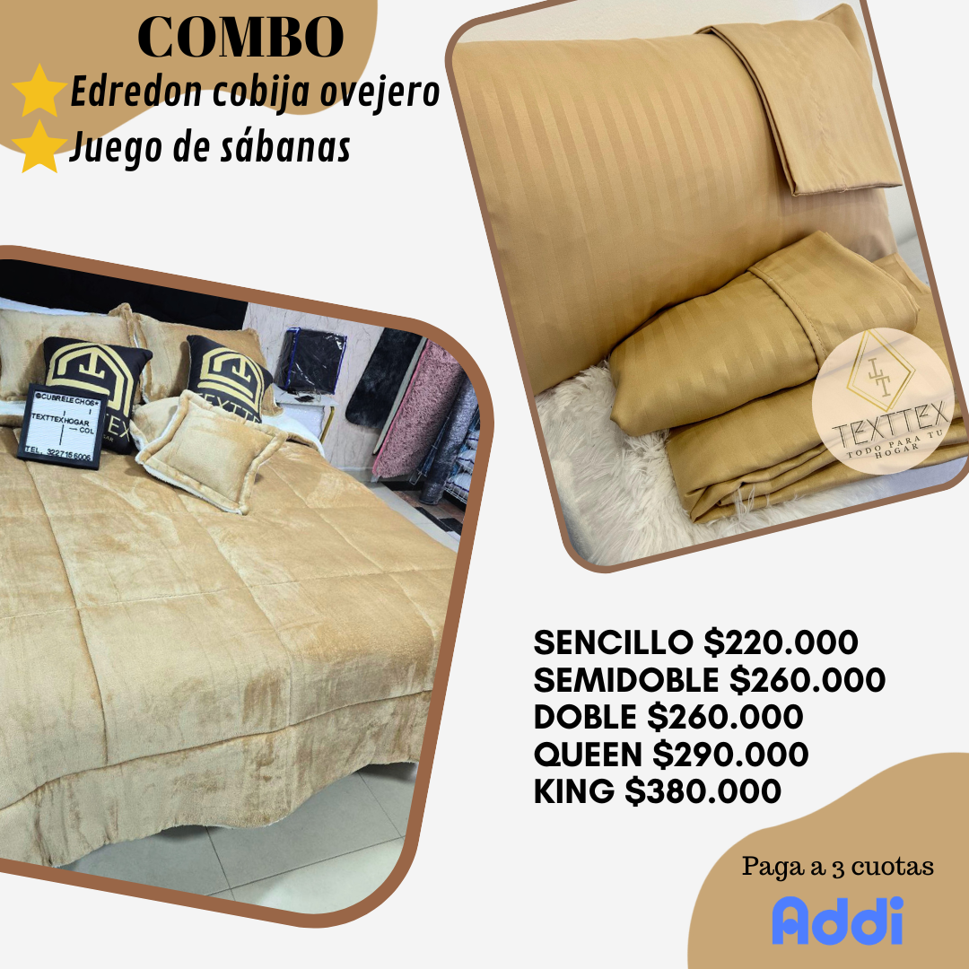 La parte delantera de este edredón está hecho de piel de conejo sintética, y la parte posterior está hecha de ovejero de alta calidad, que es suave y cómodo. Los dos materiales proporcionan diferentes sensaciones de ajuste y son adecuados para su uso en diferentes climas.  Adicional nuestro combo incluye juego de sábanas completo.