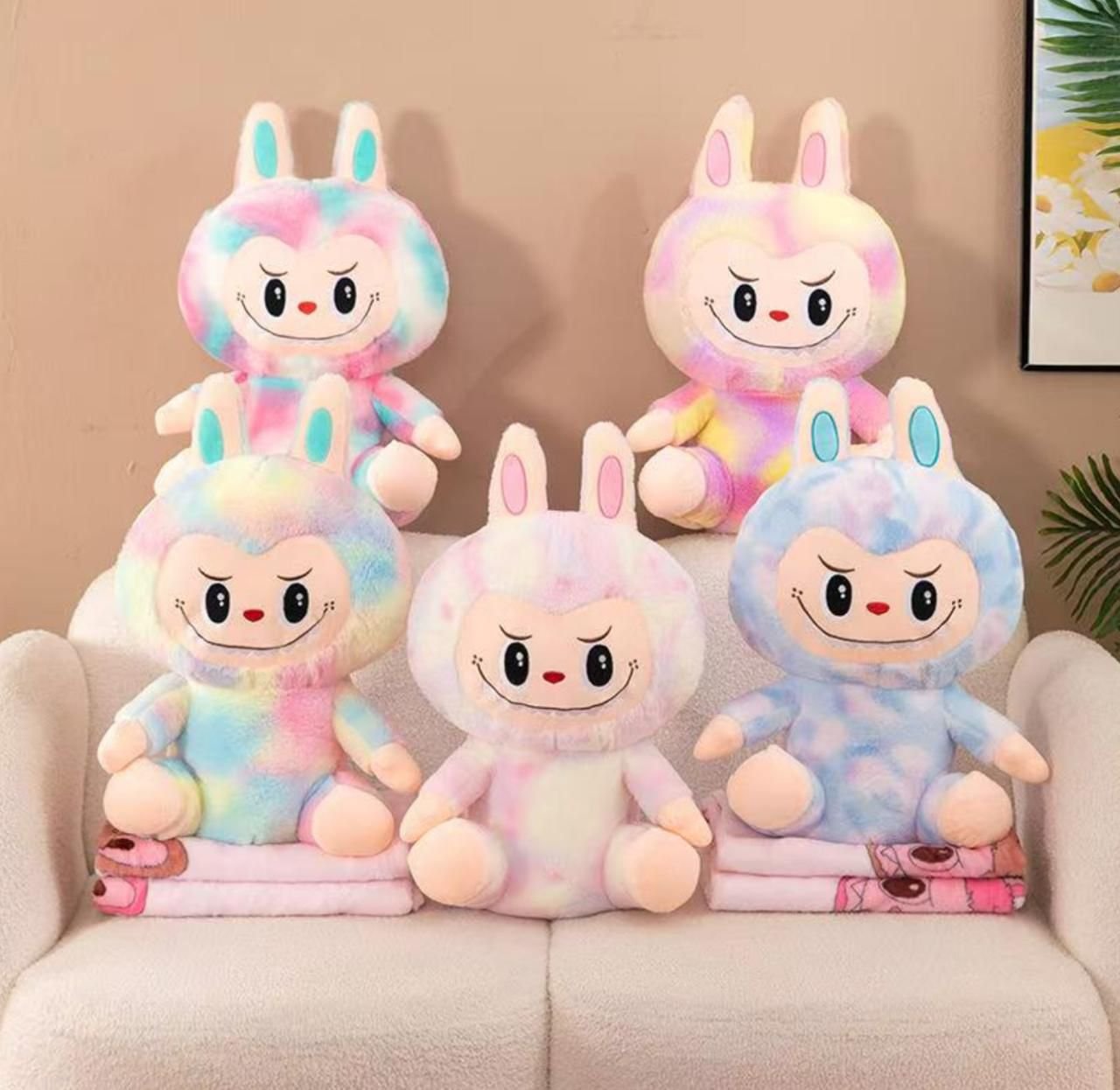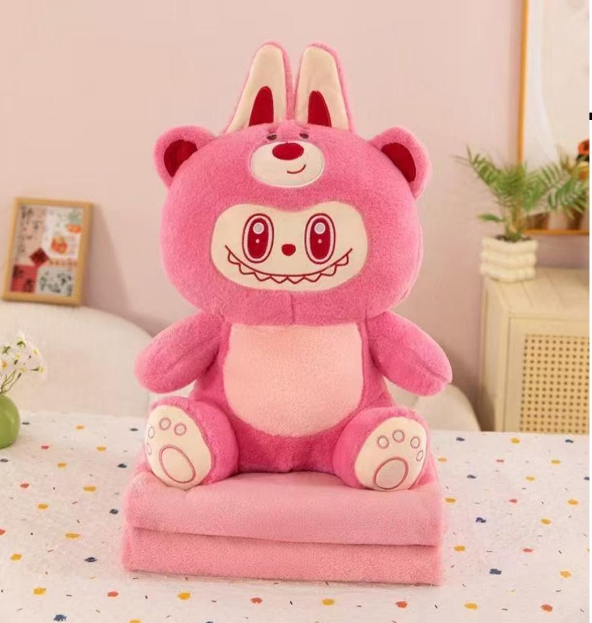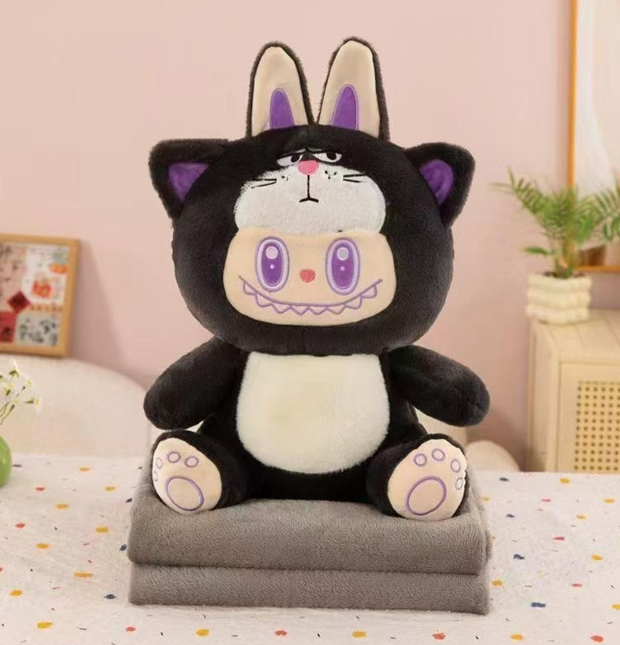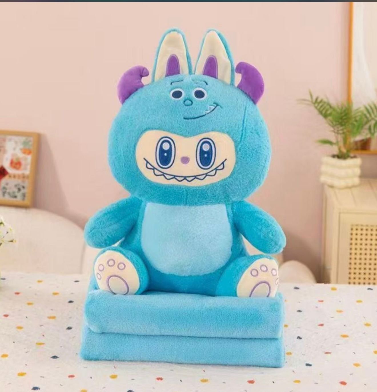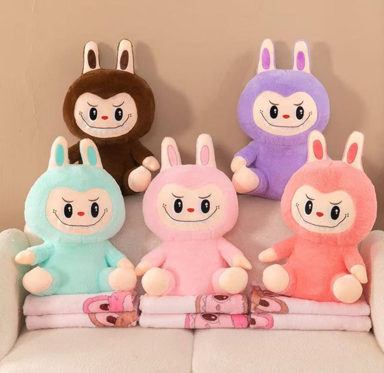 Esta LaBubu lo tiene todo: es un peluche súper suave y trae una cobija térmica de 1.10 x 1.60 metros escondida en su interior.